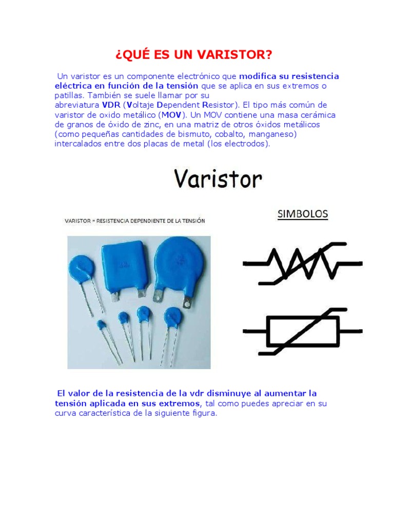 Que es un Varistor y como funciona El componente que da su vida para salvar a otros. Repara y Varistor Que Significa aprendan con este tutorial sobre el varistor a proteger circuitos. un varistor es un componente electrónico con una curva característica similar a la del diodo. el comportamiento del varistor hace que sea un componente muy bueno para proteger los circuitos durante sobretensiones, por ejemplo por rayos,. el varistor, también conocido como vdr (voltage dependent resistor), es. Varistor Que Significa.